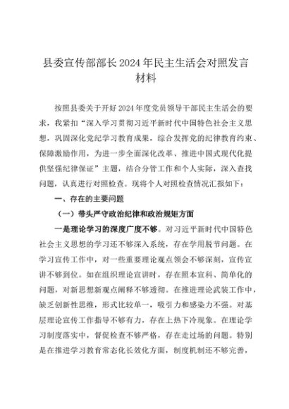 / 组织生活:2024年度“四个带头”民主生活会:5-08对照检查范文(精选原创 宣传部长 全文5100字)