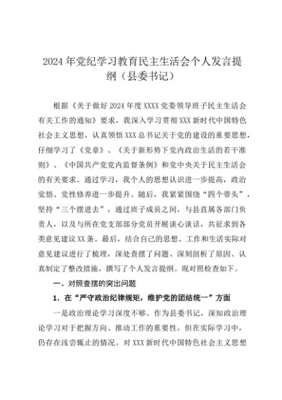 / 组织生活:2024年度“四个带头”民主生活会:5-07对照检查范文(精选原创 县委书记 全文5300字)