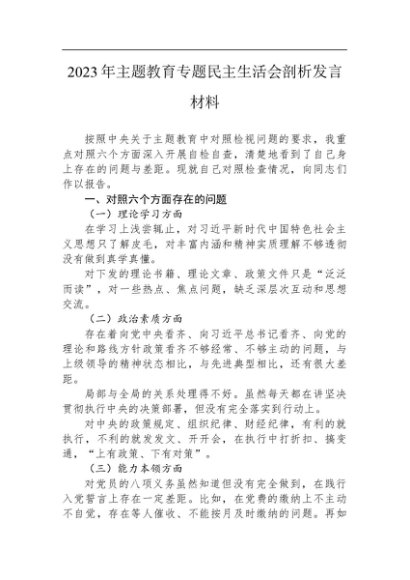 / 组织生活:2023年第一批主题教育专题民主生活会剖析发言材料