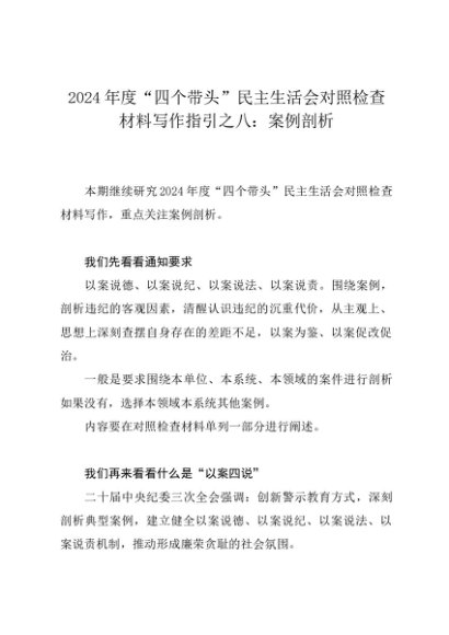 / 组织生活:2024年度“四个带头”民主生活会:4-08对照检查材料写作指引之8案例剖析(6类146条)