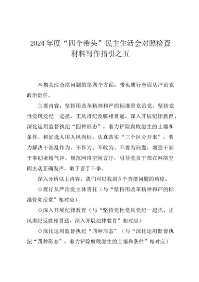 / 组织生活:2024年度“四个带头”民主生活会:4-05对照检查材料写作指引之5第四个带头(含范例177条)