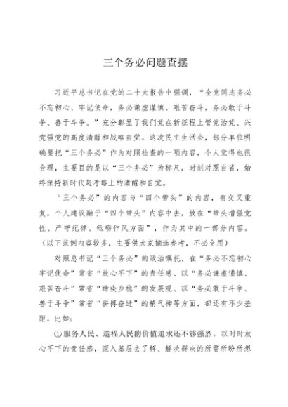 / 组织生活:2024年度“四个带头”民主生活会:4-10对照检查材料写作指引之10三个务必问题查摆