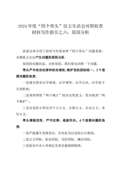 / 组织生活:2024年度“四个带头”民主生活会:4-06对照检查材料写作指引之6原因分析(8个方面116条)
