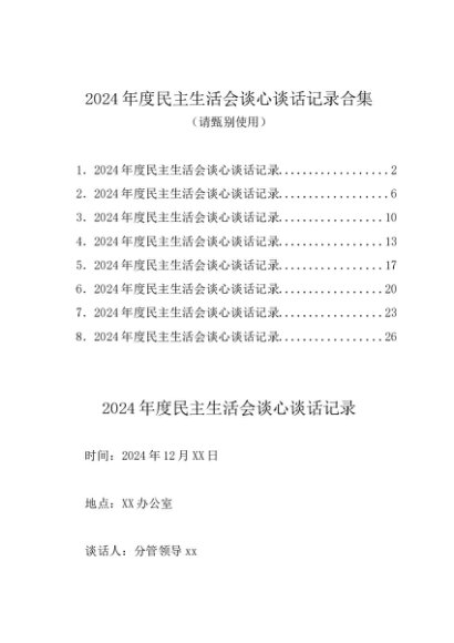 / 组织生活:2024年度“四个带头”民主生活会:3-10谈心谈话记录合集8篇