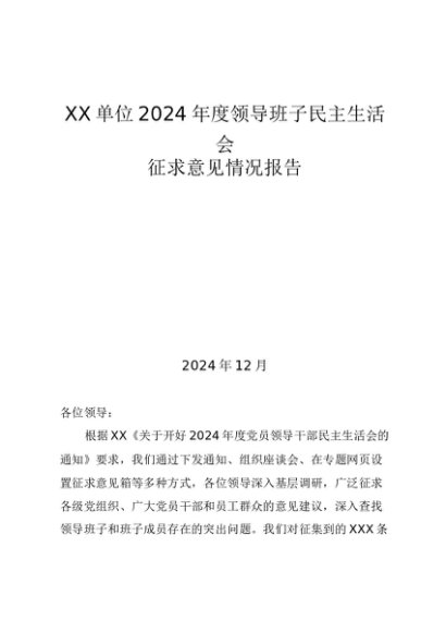 / 组织生活:2024年度“四个带头”民主生活会:2-02本级领导班子民主生活会征求意见情况报告(2个样板)