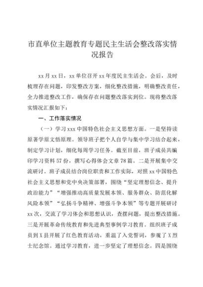 / 组织生活:2024年度“四个带头”民主生活会:2-04市直单位主题教育专题民主生活会整改落实情况报告