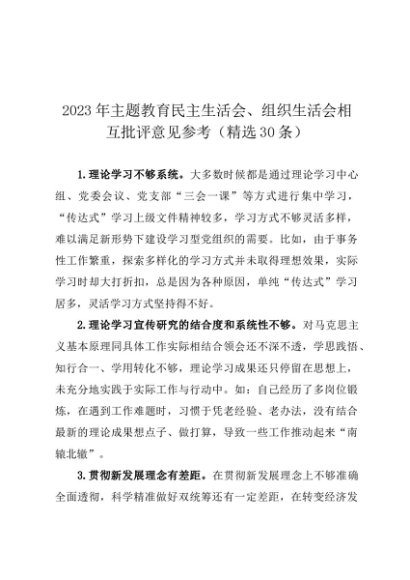 / 组织生活:2023年第二批主题教育批评意见建议精选30条