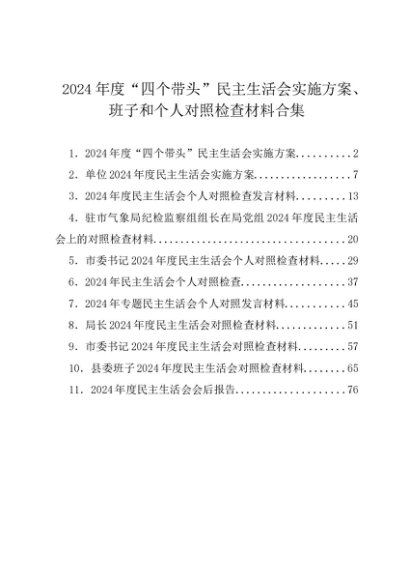 / 组织生活:2024年度“四个带头”民主生活会有关材料写作素材合集之1(11篇4万字)
