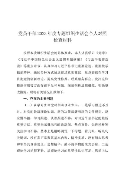/ 组织生活:2023年第二批主题教育专题组织生活会普通党员对照检查材料