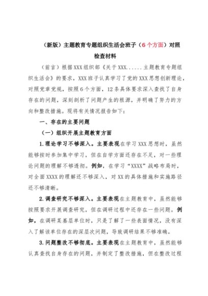 / 组织生活:2023年第二批主题教育专题组织生活班子对照检查材料(开展教育、执行决定等7个方面)