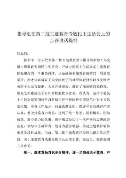 / 组织生活:2023年第二批主题教育专题民主生活会指导组点评讲话提纲(全文、推荐)