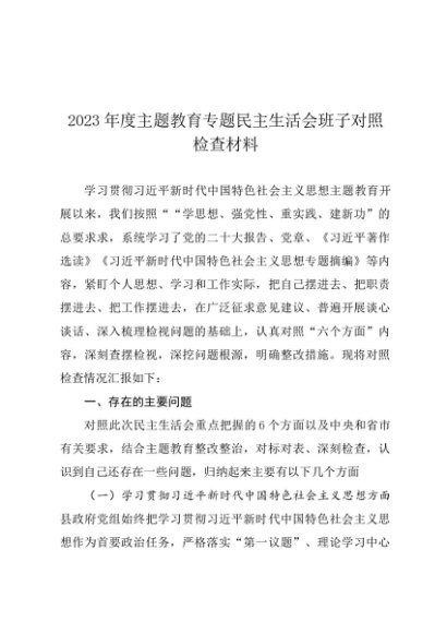 / 组织生活:2023年第二批主题教育专题民主生活会班子对照检查材料【县政府党组】