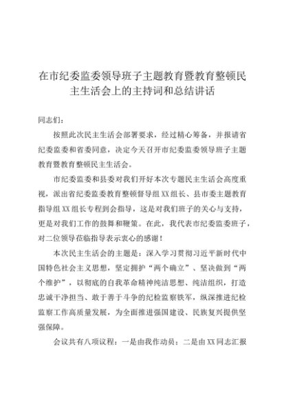 / 组织生活:2023年第二批主题教育专题民主生活会主持词和总结讲话