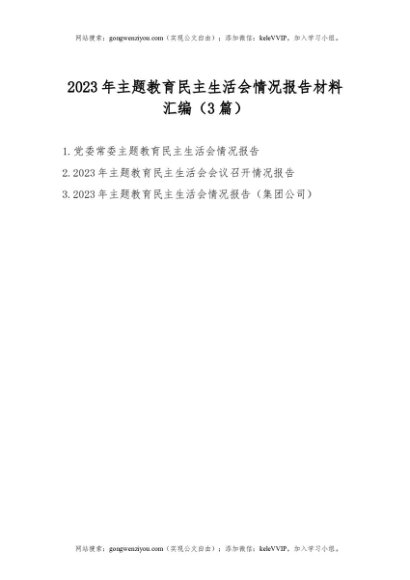 / 组织生活:2023年第二批主题教育35专题民主生活会会议召开情况报告3篇