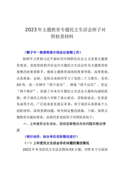 / 组织生活:2023年第二批主题教育26专题民主生活会班子对照检查材料01【8000字粤读原创】