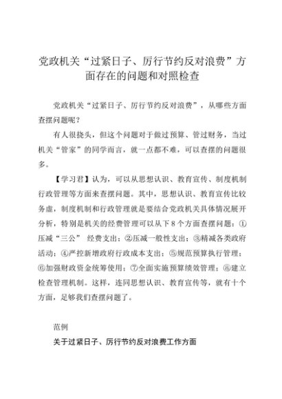 / 组织生活:2023年第二批主题教育15第八个方面问题“过紧日子、厉行节约反对浪费”方面问题起草指引+范例67条