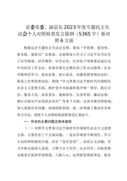 / 组织生活:2023年第二批主题教育25专题民主生活会个人对照检查材料(5000字)【县委常委、副县长】