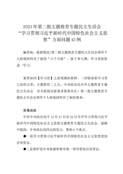组织生活:2023年第二批主题教育08第一个方面问题“学习贯彻习近平新时代中国特色社会主义思想”方面起草指引+范例126条