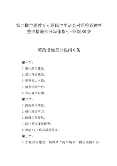 / 组织生活:2023年第二批主题教育18对照检查材料“整改措施”部分写作指引+范例88条