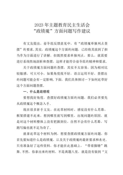 组织生活:2023年第二批主题教育14第七个方面问题“树牢和践行正确的政绩观”方面问题起草指引+范例59条