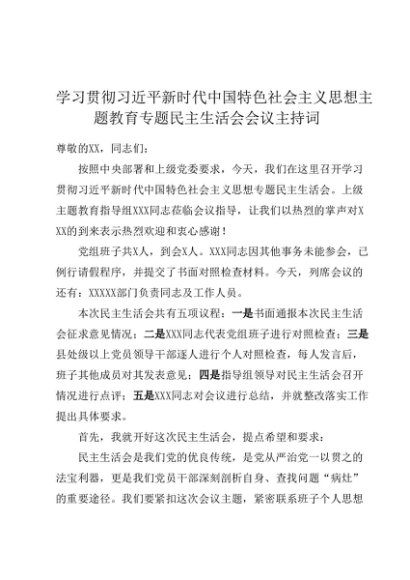 / 组织生活:2023年第二批主题教育03专题民主生活会会议主持词