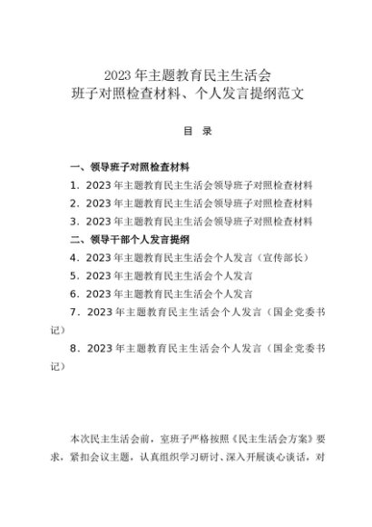 / 组织生活:2023年第一批主题教育班子对照检查、个人发言(8篇)
