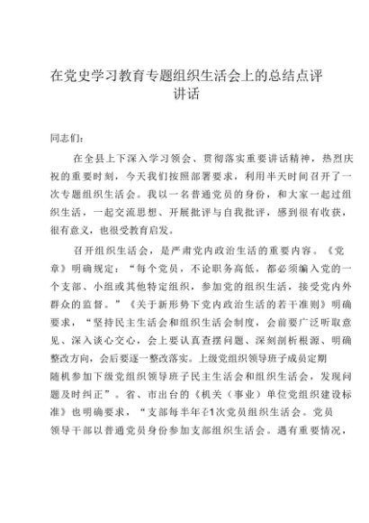 / 组织生活:2021年专题组织生活会上的总结点评讲话