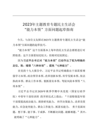 / 组织生活:2023年第一批主题教育专题民主生活会“能力本领”方面问题(6个方面95条)