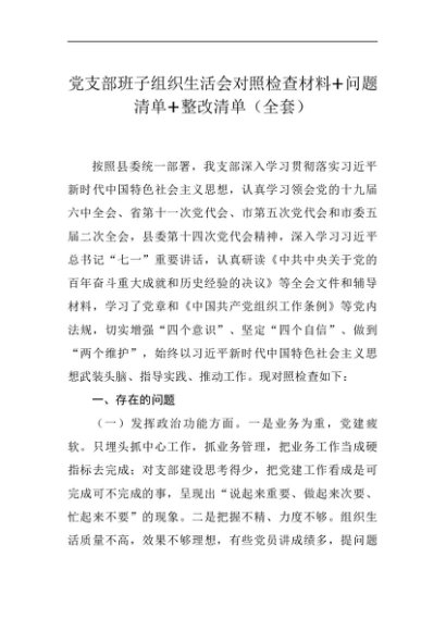 组织生活:2023年第一批主题教育专题组织生活会班子对照检查材料+问题清单+整改清单(全套)