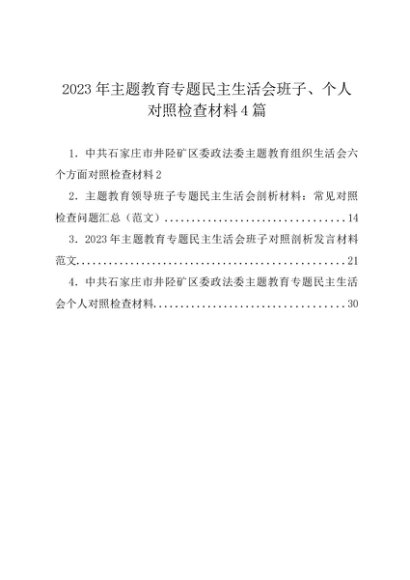 / 组织生活:2023年第一批主题教育专题民主生活会班子、个人对照检查材料4篇