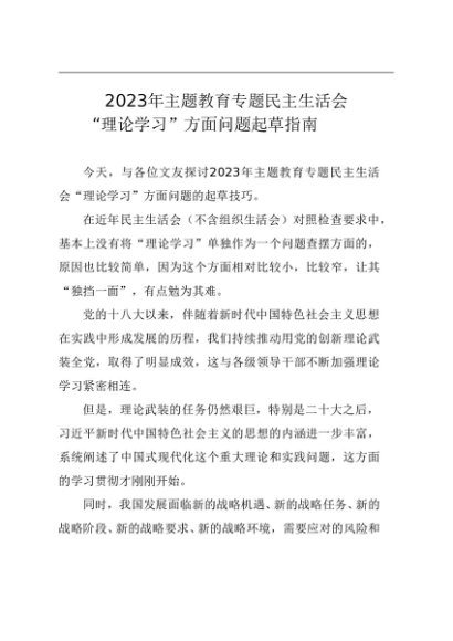 / 组织生活:2023年第一批主题教育专题民主生活会“理论学习”方面问题(6个方面96条)