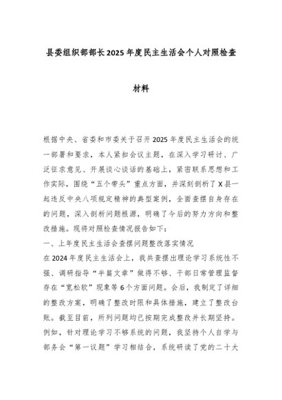 / 县委组织部部长2025年度民主生活会个人对照检查材料