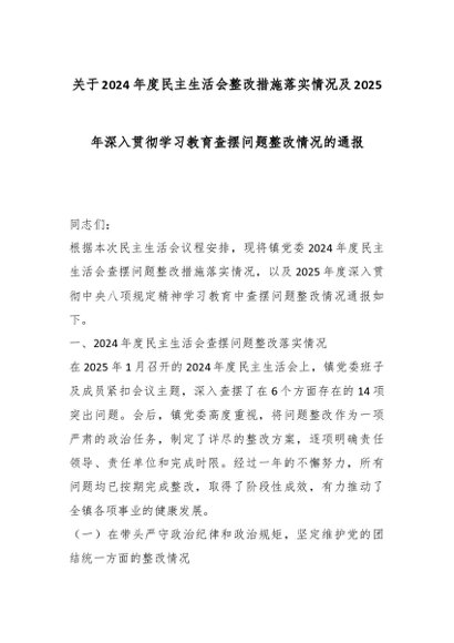 / 关于2024年度民主生活会整改措施落实情况及2025年深入贯彻学习教育查摆问题整改情