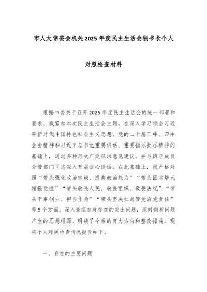 / 市人大常委会机关2025年度民主生活会秘书长个人对照检查材料