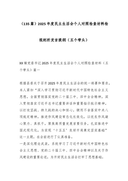 / (135篇)2025年度民主生活会个人对照检查材料检视剖析发言提纲(五个带头)