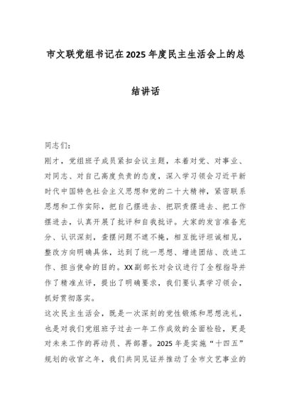 / 市文联党组书记在2025年度民主生活会上的总结讲话