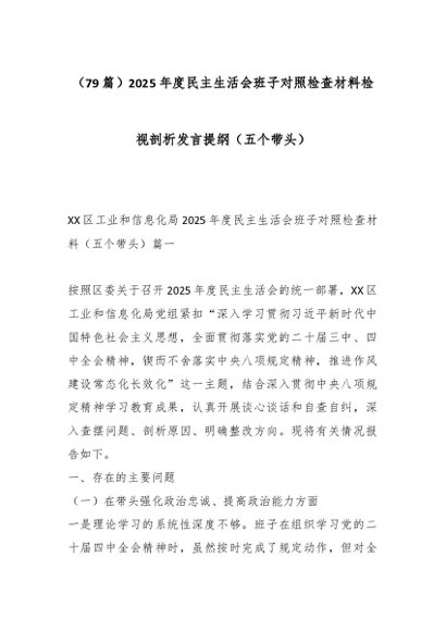 / (79篇)2025年度民主生活会班子对照检查材料检视剖析发言提纲(五个带头)