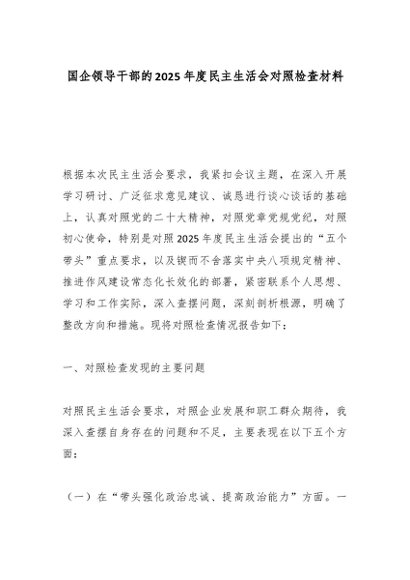 / 国企领导干部的2025年度民主生活会对照检查材料
