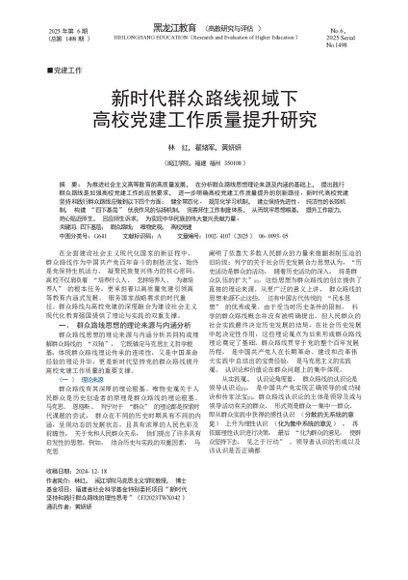 / 新时代群众路线视域下高校党建工作质量提升研究_林红