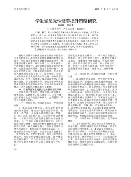 学生党员党性修养提升策略研究_李寒梅