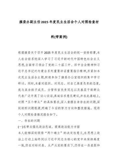 / 旗委办副主任2025年度民主生活会个人对照检查材料(带案例)