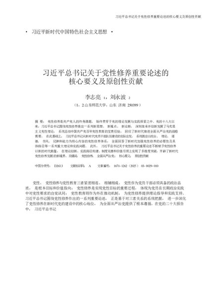 / 习近平总书记关于党性修养重要论述的核心要义及原创性贡献_李志亮