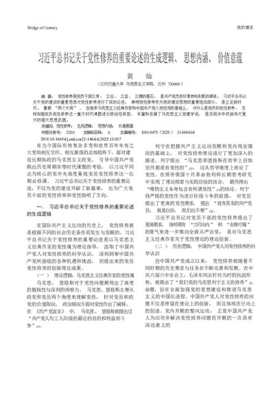 / 习近平总书记关于党性修养的重要论述的生成逻辑、思想内涵、价值意蕴_黄灿