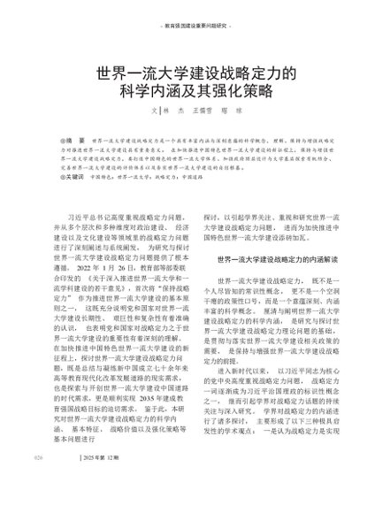 / 世界一流大学建设战略定力的科学内涵及其强化策略_林杰