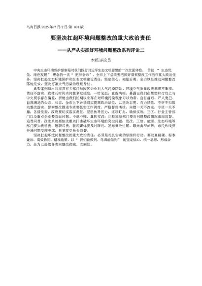 要坚决扛起环境问题整改的重大政治责任_本报评论员