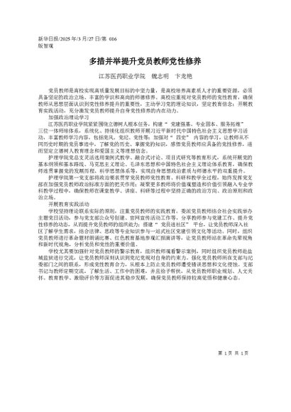 / 多措并举提升党员教师党性修养_江苏医药职业学院__魏志明__卞龙艳