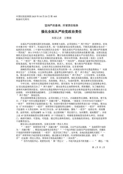 强化全面从严治党政治责任_本报记者__王雅婧