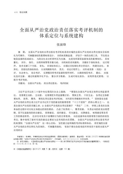 / 全面从严治党政治责任落实考评机制的体系定位与系统建构_张演锋