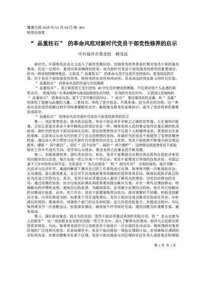 / “品重柱石”的革命风范对新时代党员干部党性修养的启示_中共福州市委党校__赖龙波