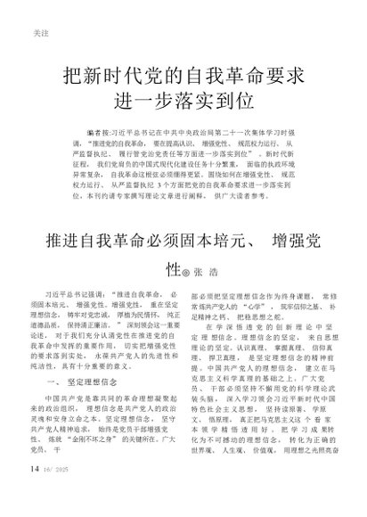 / 推进自我革命必须固本培元、增强党性_张浩